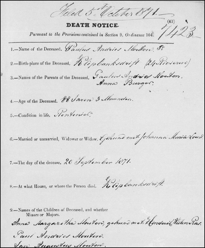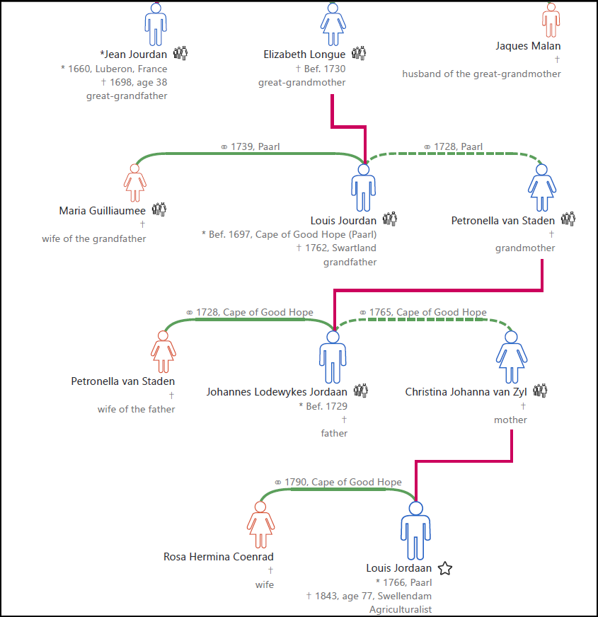 Ons soek die name, geboorte datums en basiese inligting van jou pa (of ma) se voorvaders in een rigting.